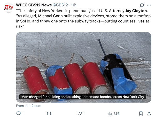 According to a federal indictment, 55-year-old Michael Gann had already begun planting deadly improvised explosive devices (IEDs) across NYC. One device was allegedly thrown onto the Williamsburg Bridge subway tracks. More bombs were found stashed on SoHo rooftops al ongside shotgun shells—ready to unleash chaos.