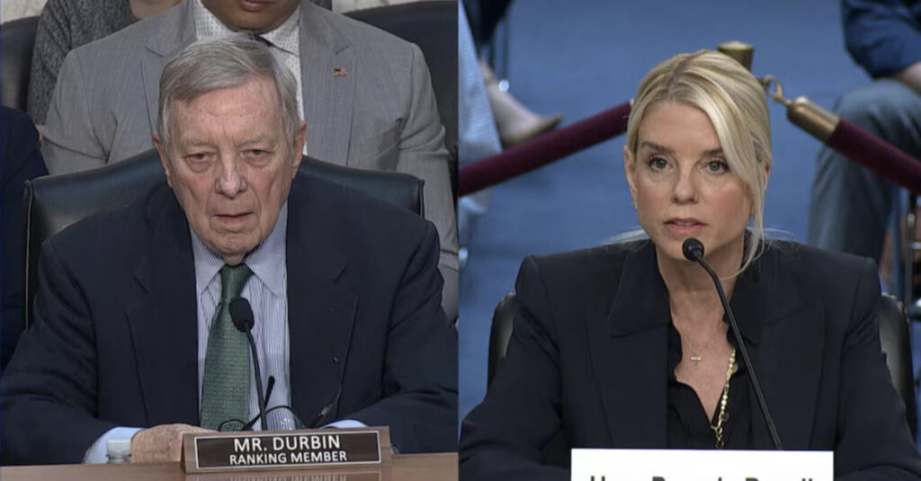 When Durbin attempted to dismiss the accusation, Bondi pressed harder, questioning his motives and potential conflicts of interest.