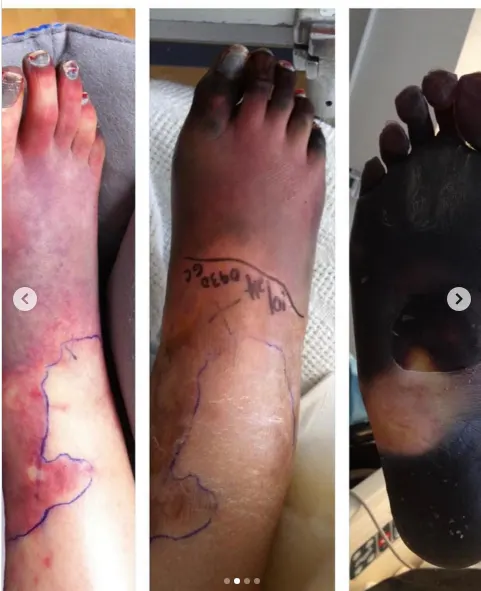 Gangrene damage to Lauren Wasser’s feet, Photo Credit: theimpossiblemuse/Instagram