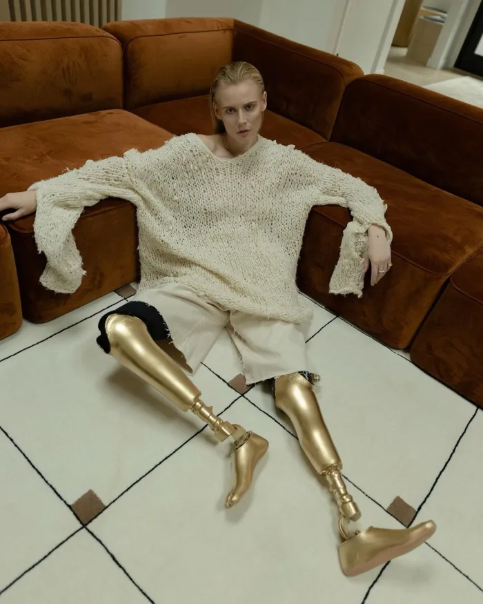 Despite the immense challenges she has faced, Wasser has built a successful career in fashion, appearing in campaigns for high-profile brands such as Lacoste, Furla, and Shiseido. She has earned the affectionate nickname “fashion’s Girl with the Golden Legs,” a nod to her striking golden prosthetic limbs.